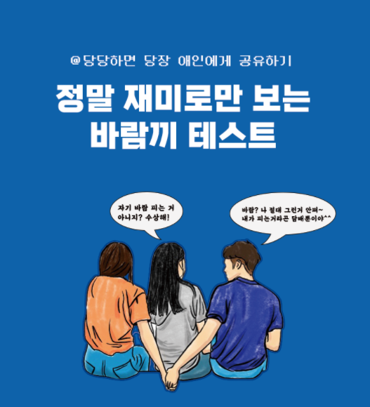 그래서 이번에 해봤던 심리테스트는 바람끼 테스트입니다.